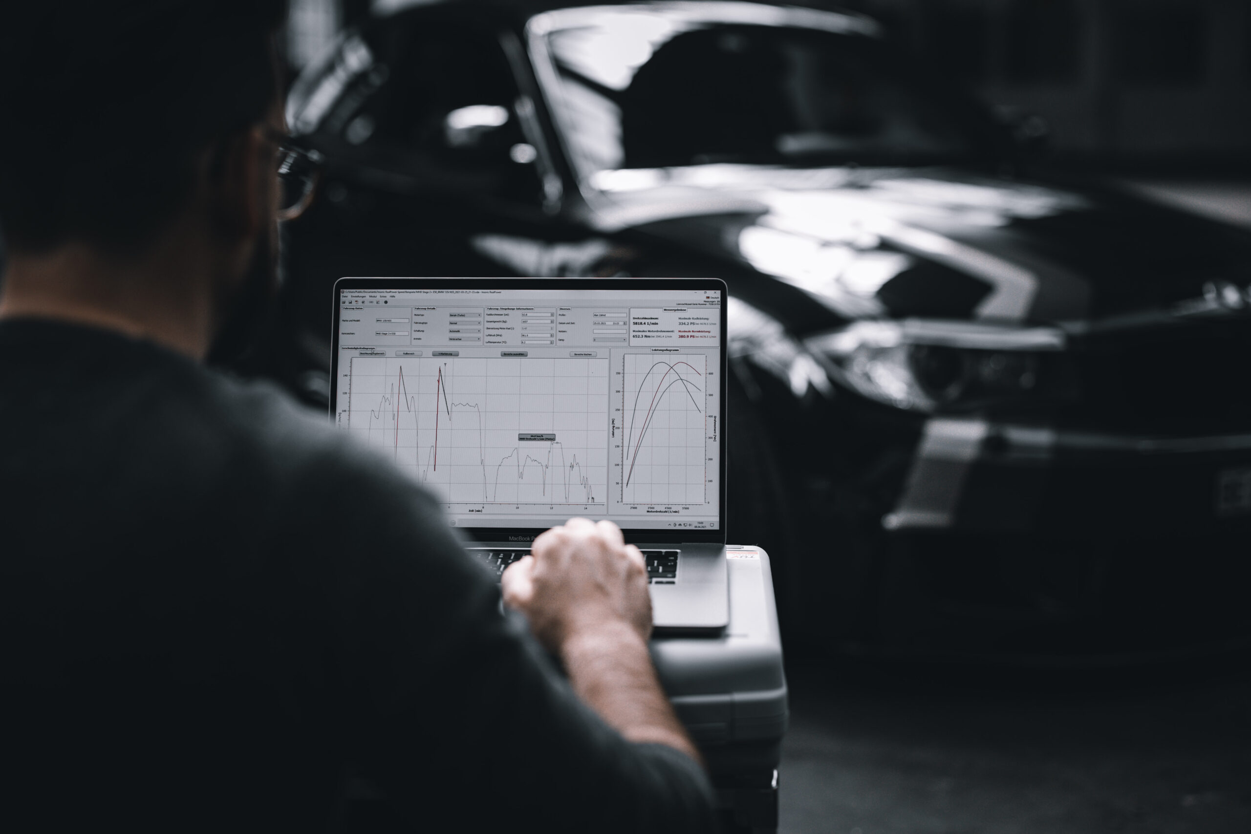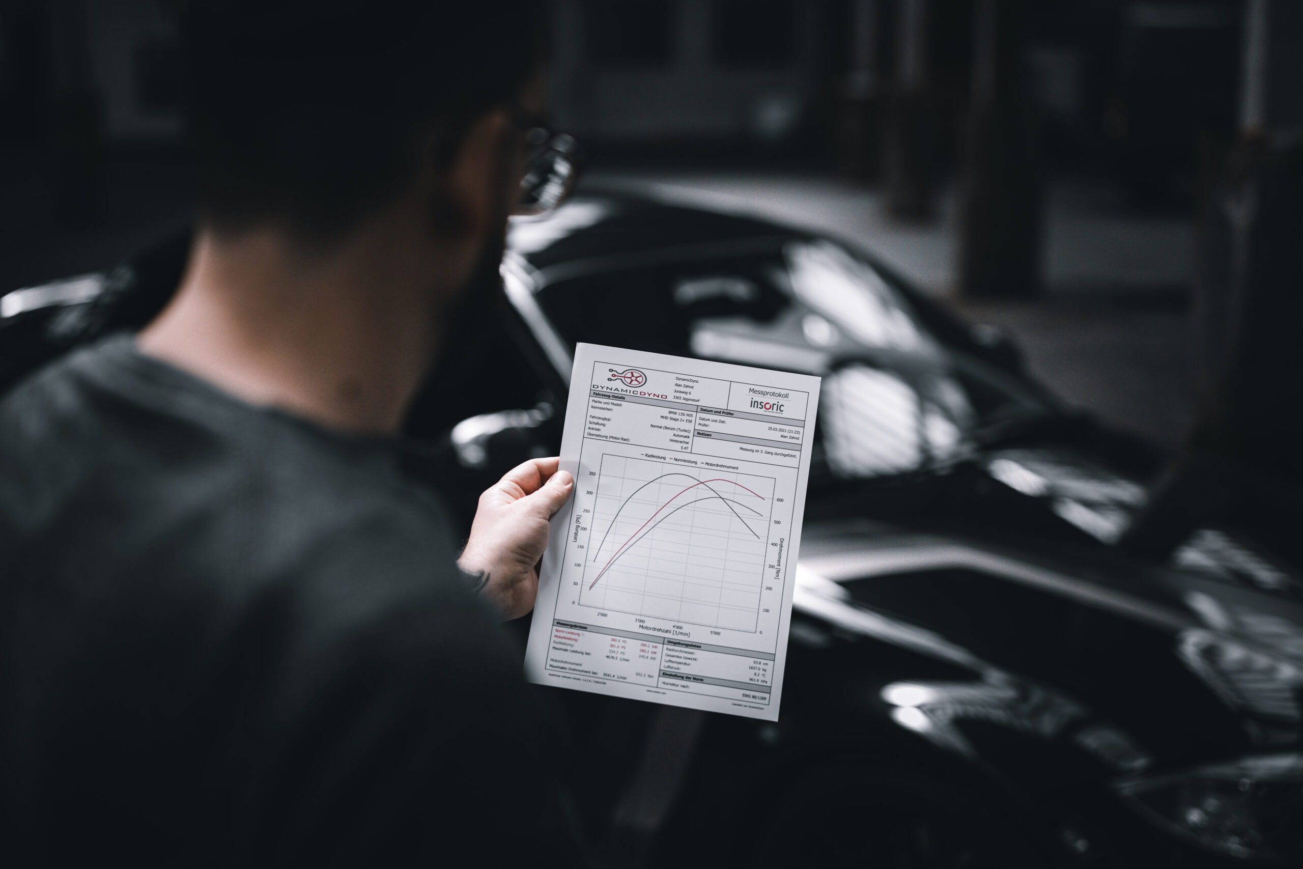 Die Leistung des Autos wird mobil & hochpräzise gemessen.